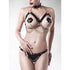 Dive into seduction with this 3 piece erotic chain set! This daring ensemble features a faux leather harness bra adorned with chains and a sleek collar, all adjustable for the perfect fit. It comes complete with self-adhesive nipple patches in a charming flower shape and a matching thong embellished with decorative chains and rivets. Perfect for those seeking to explore their wild side with a touch of provocative elegance.