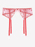 A romantic suspender belt. Details we love: romantic floral embroidery. A fresh, sensual colour palette of pink and red. The perfect accessory for special occasions.
